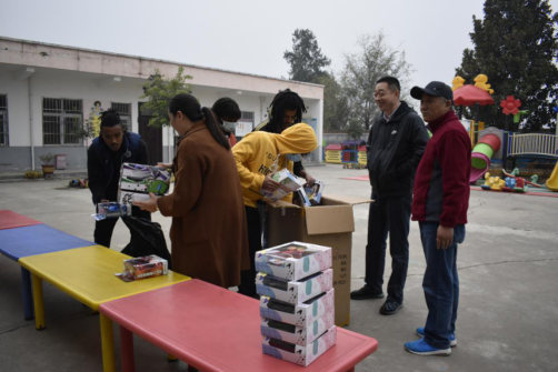 (通讯员阿远)11月16日,申博sunbet副董事长宿金勇,国际教育公司党支部书记吕鹏飞,经理王许涛,副书记刘艳杰,辅导员阿远和职工到鲁山县搬走岭村幼儿园进行义务外语启蒙教育扶贫活动。